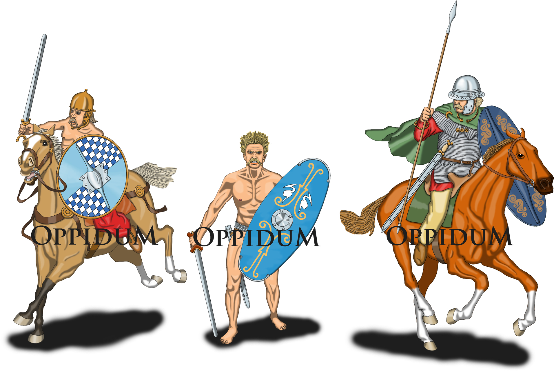 La production de la semaine : Des Celtes avec des boucliers hauts en couleur. Celui du personnage de droite a un damier au centre qui est caché par le cheval. Il faudra attendre de découvrir le pion à pied pour le voir.